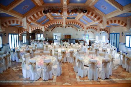 Visuellement, le domaine Hacienda où se déroulait la fête était exceptionnel, un endroit parfait pour prendre des photos, l’extérieur se prêtait parfaitement à la disposition d’un vin d’honneur pour 250 personnes, l’intérieur était décoré avec soin, les plafonds et les murs donnent du cachet au lieu et permet de finir une décoration de mariage.